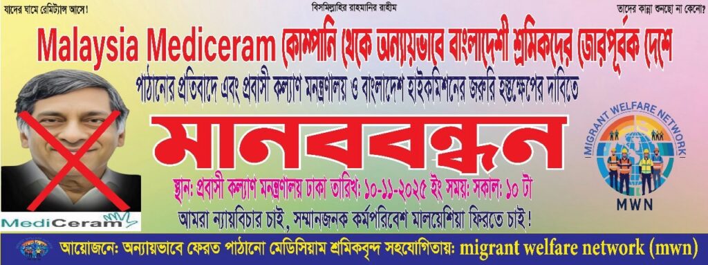 The Migrant Welfare Network (MWN) highlights and emphasises that “these workers have built Malaysia’s industries and supported Bangladesh’s economy through their remittances. They deserve justice—not deportation, debt, or threat.”