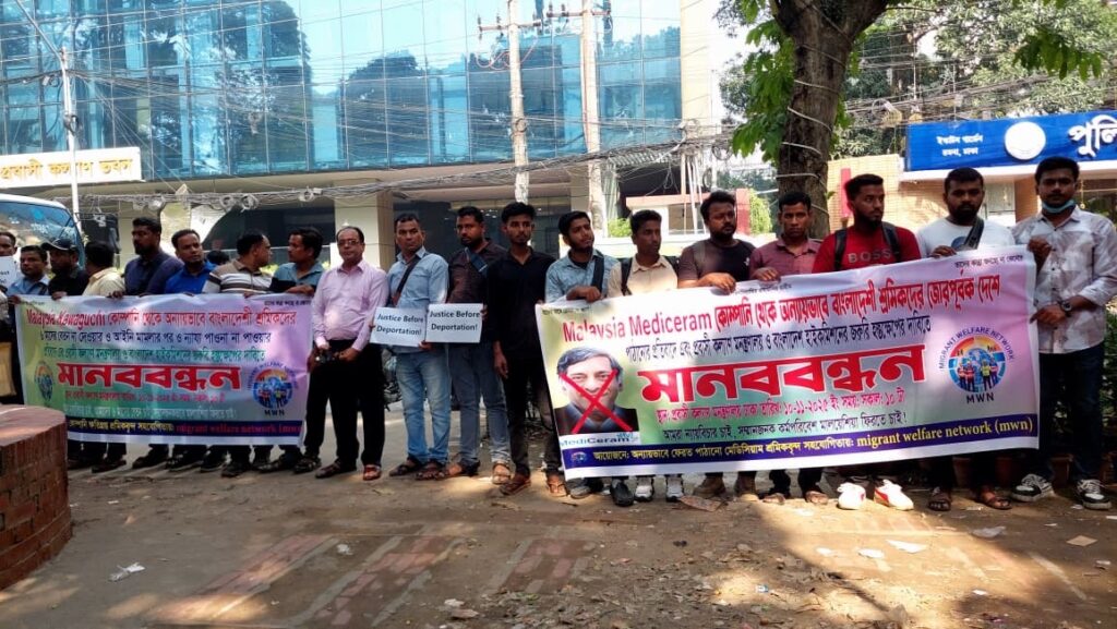 The event aimed to demand urgent support for 431 Bangladeshi workers exploited by two Malaysian companies, Mediceram Sdn. Bhd. and Kawaguchi Manufacturing Sdn. Bhd., and to draw attention to the widespread mistreatment of migrant workers in Malaysia.