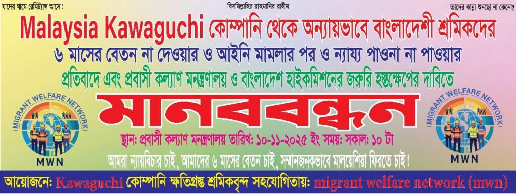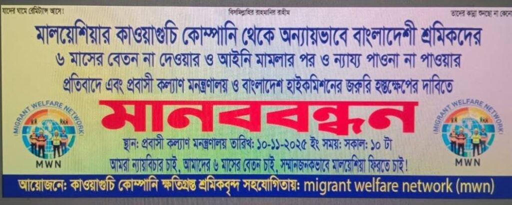 The Migrant Welfare Network (MWN) highlights and emphasises that “these workers have built Malaysia’s industries and supported Bangladesh’s economy through their remittances. They deserve justice—not deportation, debt, or threat.”