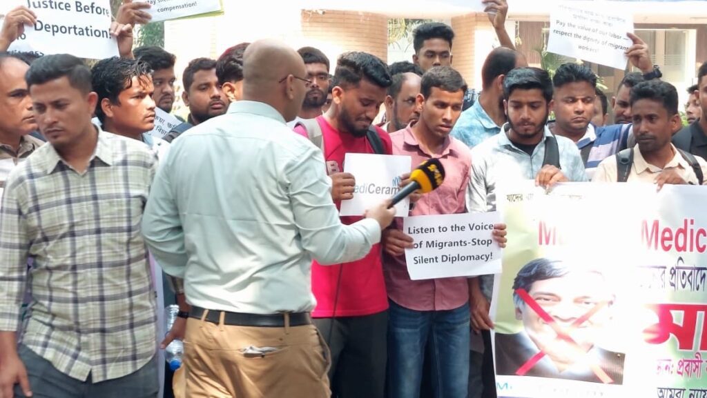 The Migrant Welfare Network, a Bangladeshi migrant group based in Malaysia and Bangladesh, organized the protest at the Ministry of Expatriates’ Welfare and Overseas Employment in Bangladesh’s capital Dhaka.