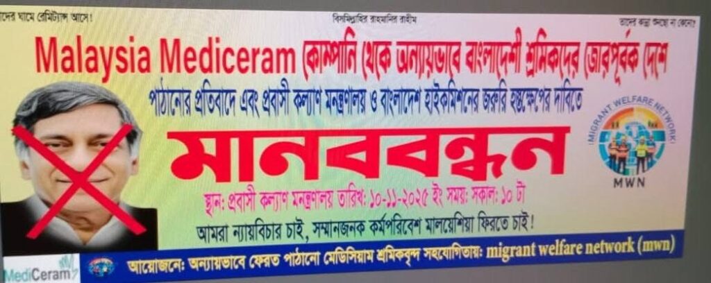 14th Nov 2025 Bangaldeshi High Commission KL Statement on Mediceram: Bangladeshi workers protest with Malaysian Mediceram company